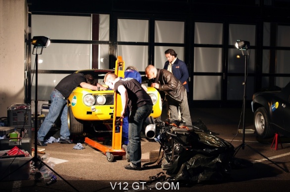 Accueil V12 GT / Les plus belles photos de GT et de Classic. / Classic Driver / Epreuves de régularité / Alfa Romeo Giulia Sprint orange Tour Auto 2009 réparation de nuit