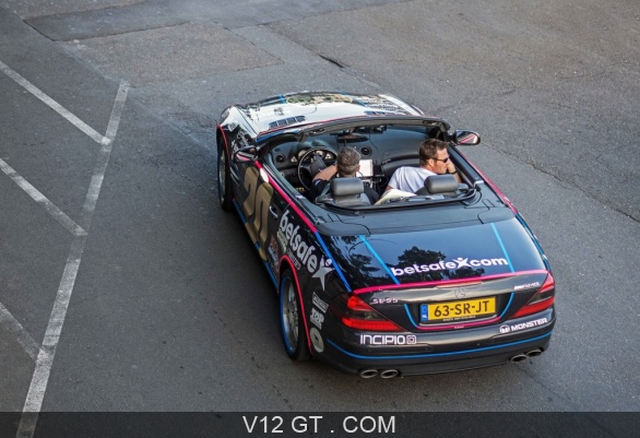 Accueil V12 GT / Les plus belles photos de GT et de Classic. / GT Driver / Gumball 3000 2014 / Mercedes SL55 AMG noir 3/4 arrière gauche vue de haut
