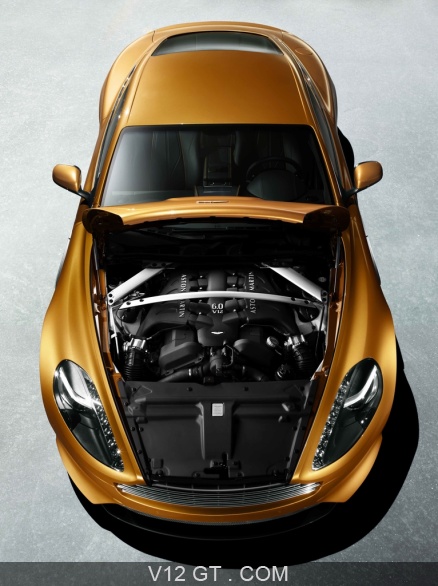 Accueil V12 GT / Les plus belles photos de GT et de Classic. / Photos GT / Aston Martin / Aston Martin Virage orange face avant vue de haut capot ouvert debout