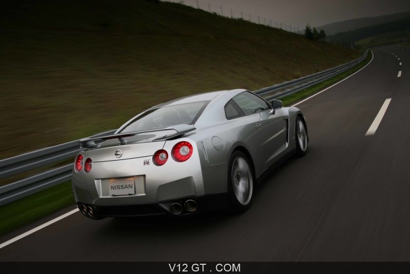 Accueil V12 GT / Les plus belles photos de GT et de Classic. / Photos GT / Nissan / Nissan GTR gris 3/4 arrière droit travelling penché