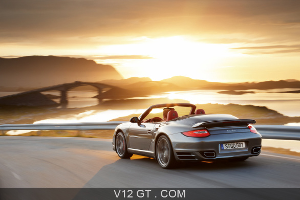 Accueil V12 GT / Les plus belles photos de GT et de Classic. / Photos GT / Porsche / Porsche 997 Turbo Cabriolet MkII anthracite 3/4 arrière gauche travelling 2