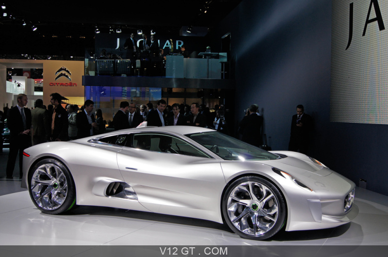 Accueil V12 GT / Les plus belles photos de GT et de Classic. / Photos Salons / Mondial de l'Automobile 2010 / Mondial de l'Automobile Paris 2010 - Jaguar C-X75 gris 3/4 avant droit 2
