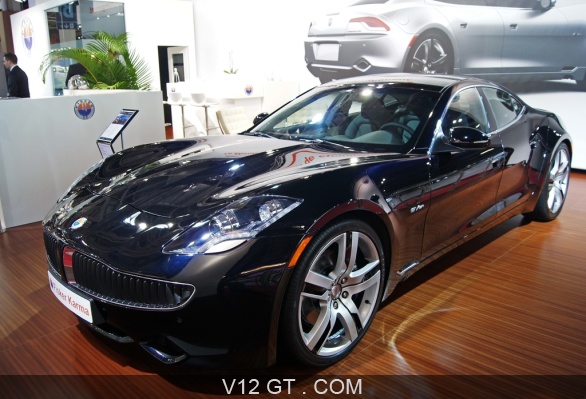 Accueil V12 GT / Les plus belles photos de GT et de Classic. / Photos Salons / Mondial de l'Automobile de Paris 2012 / Mondial de l'Automobile de Paris 2012 - Fisker Karma bleu 3/4 avant gauche