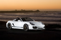 Porsche Boxster Spyder blanc filé penché