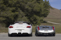 Porsche Boxster Spyder blanc 3/4 avant droit & 550 Spyder gris 3/4 avant gauche